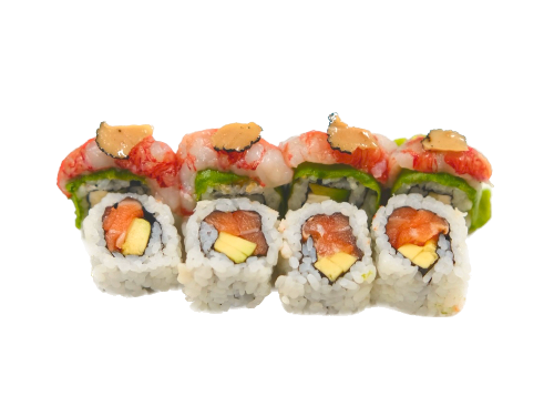 TARTUFO ROLL(salmone, avocado, gambero rosso di Sicilia e carpaccio di tartufo nero 8pz)
